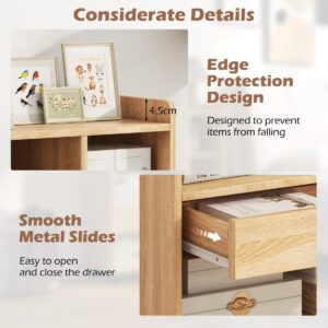 Costway Verrijdbaar Archiefkast met Lade Opbergmeubel met Verstelbare Planken Open Vakken Haken Rollend Archiefkast Natuurlijke