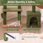 Costway 81 cm Hoge Moderne Kattenboom Groene Cactus Kattentoren Zitstok Hangmat Sisal Krabpalen Afwasbaar Kussen voor Binnenkatten